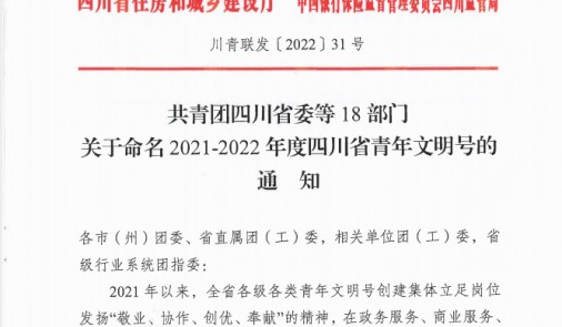 近日,在共青團四川省委等18部門發(fā)布的《關于命名20212022年度四川省青年文明號的通知》中,廣安市中小企業(yè)服務中心被授予四川省