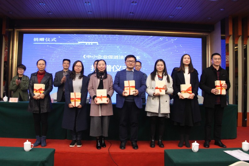 會議現(xiàn)場舉行了捐贈儀式,德陽市企業(yè)代表獲贈《中小企業(yè)促進法》讀本。