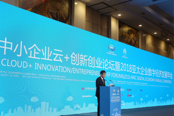 2018年11月30日,第二屆APEC中小企業(yè)云+創(chuàng)新創(chuàng)業(yè)論壇暨2018亞太企業(yè)數(shù)字經(jīng)濟(jì)發(fā)展年會在北京成功舉辦。工業(yè)和信息化部中小企業(yè)局副局長葉定達(dá)出席并致辭。