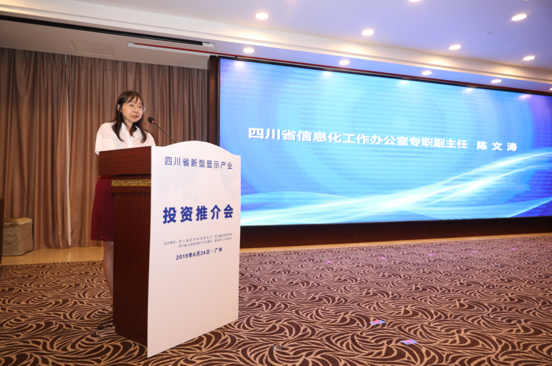 6月24日下午,四川省新型顯示產(chǎn)業(yè)投資推介會在廣州召開。四川省人民政府黨組成員、副省長楊洪波出席并講話,工信部電子基礎處處長王威偉,四川省信息化工作辦公室專職副主任陳文濤出席并講話;綿陽市委常委羅宗志作新型顯示產(chǎn)業(yè)投資推介。大會由省經(jīng)信廳總經(jīng)濟師李堂兵主持。