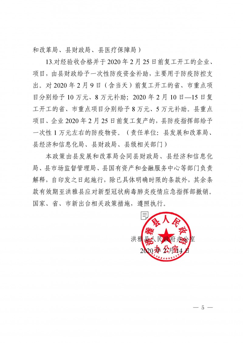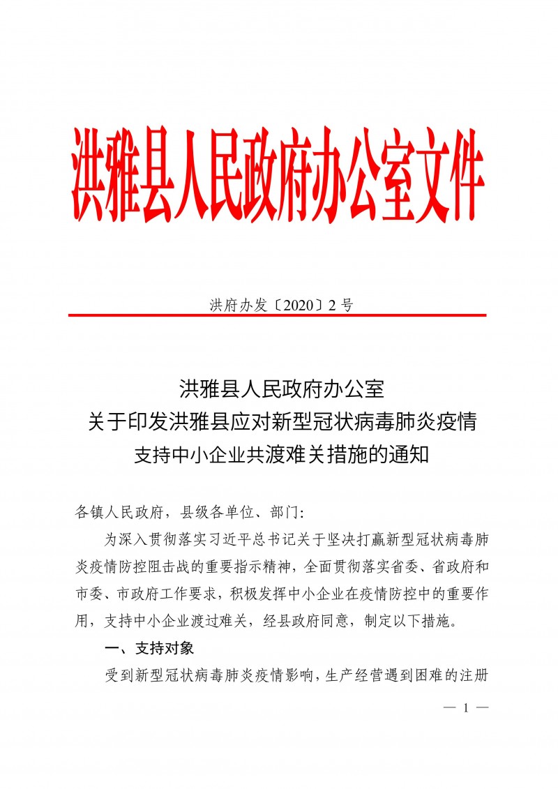 洪雅縣人民政府辦公室 關(guān)于印發(fā)洪雅縣應(yīng)對(duì)新型冠狀病毒肺炎疫情 支持中小企業(yè)共渡難關(guān)措施的通知
