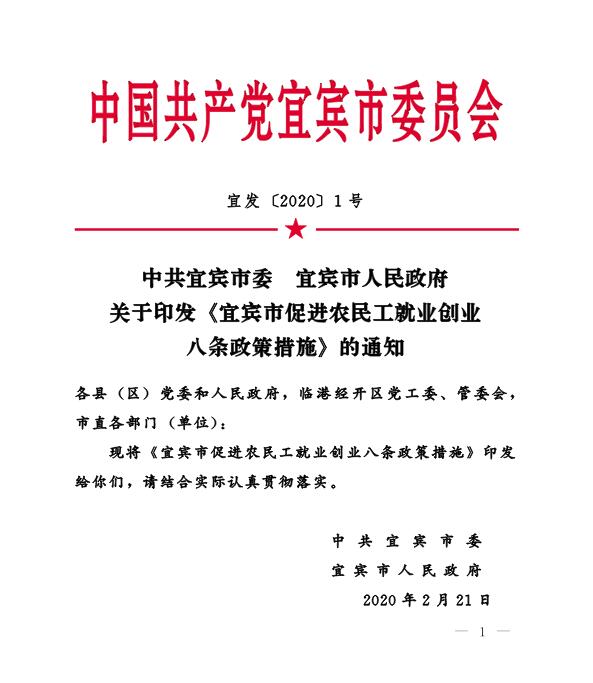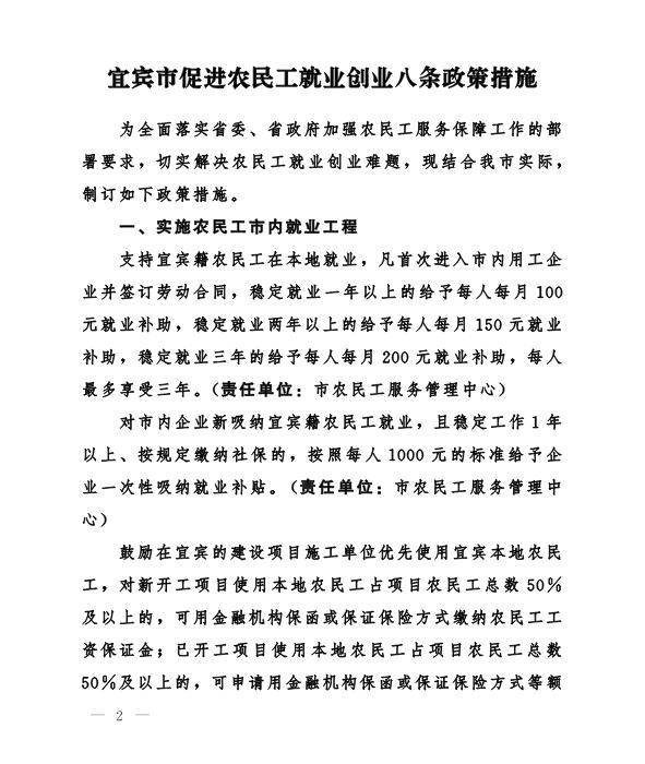 >>中共宜賓市委 宜賓市人民政府關(guān)于印發(fā)《宜賓市促進(jìn)農(nóng)民工就業(yè)創(chuàng)業(yè)八條政策措施》的通知