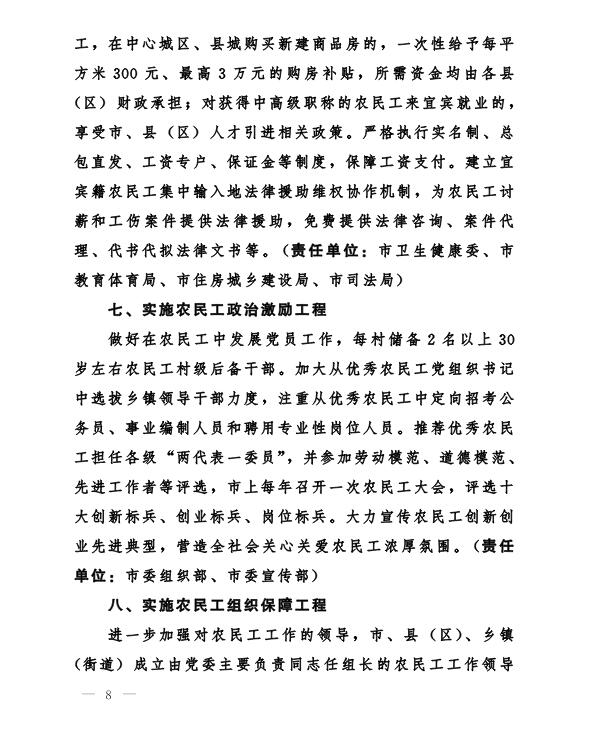 中共宜賓市委 宜賓市人民政府關(guān)于印發(fā)《宜賓市促進(jìn)農(nóng)民工就業(yè)創(chuàng)業(yè)八條政策措施》的通知