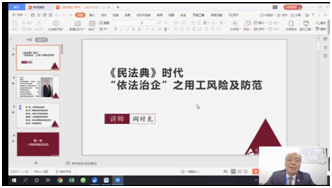 《民法典》自2021年1月1日起施行,習(xí)近平總書記就廣泛開展民法典普法工作作出重要指示,他強(qiáng)調(diào)“民法典在中國特色社會(huì)主義法律體系中具有重要地位,是一部固根本、穩(wěn)預(yù)期、利長遠(yuǎn)的基礎(chǔ)性法律”。此次舉辦的《民法典時(shí)代“依法治企”之用工風(fēng)險(xiǎn)及防范》線上培訓(xùn)課程,是《民法典》實(shí)施以來,中心的首場線上培訓(xùn)課程,是助推 “依法治企”的重要舉措,更是根據(jù)當(dāng)前疫情防控政策促進(jìn)企業(yè)成長的有效方法!
