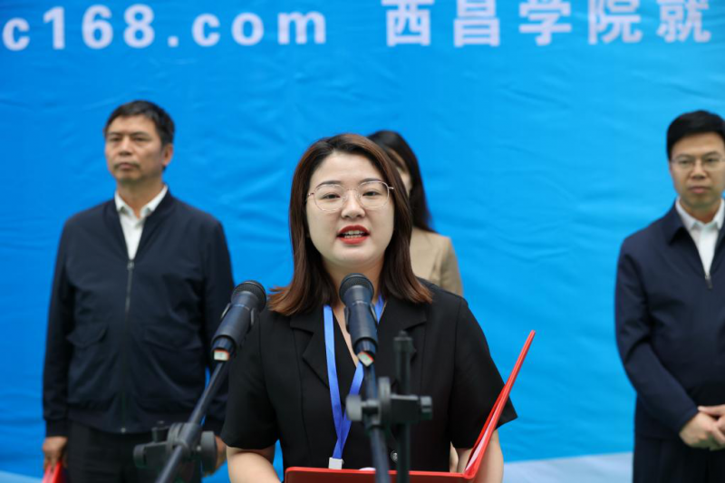 四川省人才交流中心主任王霞講話。她指出,就業(yè)是最基本的民生,黨中央、國務(wù)院高度重視高校畢業(yè)生就業(yè)工作。習(xí)近平總書記在來川視察時(shí)強(qiáng)調(diào):“當(dāng)前正是高校畢業(yè)生就業(yè)的關(guān)鍵階段,要進(jìn)一步挖掘崗位資源,做實(shí)做細(xì)就業(yè)指導(dǎo)服務(wù)”。今年,我省高校畢業(yè)生規(guī)模將達(dá)63萬人,再創(chuàng)歷史新高。省委、省政府始終把促進(jìn)高校畢業(yè)生等重點(diǎn)群體就業(yè)擺在更加突出的位置,希望各公共服務(wù)機(jī)構(gòu)和西昌學(xué)院通力合作,各用人單位充分發(fā)揮行業(yè)優(yōu)勢,前來求職的同學(xué)們能夠珍惜難得的機(jī)會(huì),積極應(yīng)聘應(yīng)試,促進(jìn)高校畢業(yè)生高質(zhì)量充分就業(yè)。在全面建設(shè)社會(huì)主義現(xiàn)代化國家新征程上奮力譜寫四川發(fā)展新篇章。