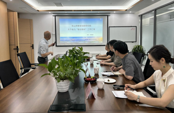 在樂山市數(shù)智創(chuàng)新研究院,學(xué)習(xí)組認(rèn)真聽取了“智改數(shù)轉(zhuǎn)”工作匯報(bào),學(xué)習(xí)了在“智改數(shù)轉(zhuǎn)”診斷方面先進(jìn)做法。