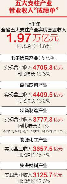上半年,全省“5+1”現(xiàn)代產(chǎn)業(yè)保持總體平穩(wěn)、穩(wěn)中有進(jìn)發(fā)展態(tài)勢,五大支柱產(chǎn)業(yè)實現(xiàn)營業(yè)收入1.97萬億元,同比增長11.8%,有力支撐全省規(guī)模以上工業(yè)增加值增長8.2%。